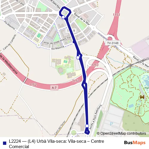 Click here to view the nearest L2224 - (L4) Urbà Vila-seca: Vila-seca – Centre Comercial bus stop.