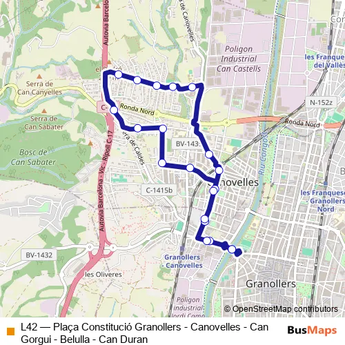 Click here to view the nearest L42 - Plaça Constitució Granollers - Canovelles - Can Gorgui - Belulla - Can Duran bus stop.