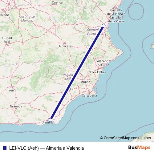 Click here to view the nearest LEI-VLC (Aeh) - Almería a Valencia air stop.