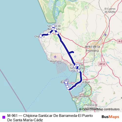 Click here to view the nearest M-961 - Chipiona-Sanlúcar De Barrameda-El Puerto De Santa María-Cádiz bus stop.