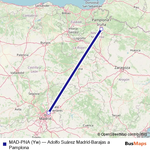Click here to view the nearest MAD-PNA (Yw) - Adolfo Suárez Madrid-Barajas a Pamplona air stop.