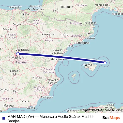 Click here to view the nearest MAH-MAD (Yw) - Menorca a Adolfo Suárez Madrid-Barajas air stop.
