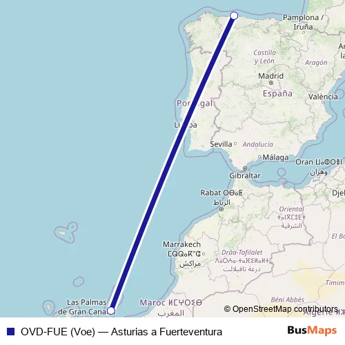 Click here to view the nearest OVD-FUE (Voe) - Asturias a Fuerteventura air stop.