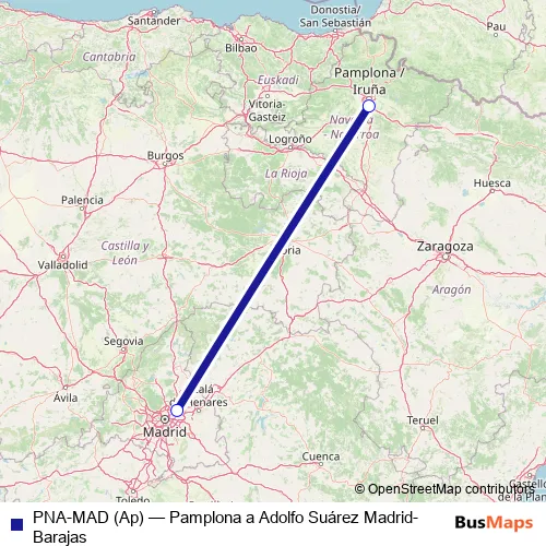 Click here to view the nearest PNA-MAD (Ap) - Pamplona a Adolfo Suárez Madrid-Barajas air stop.
