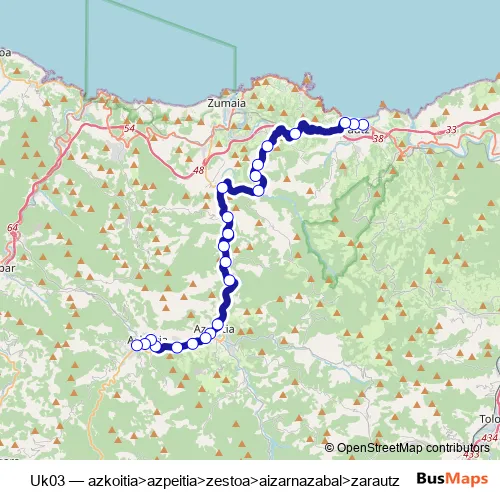Bus Uk03 - azkoitia>azpeitia>zestoa>aizarnazabal>zarautz in Azpeitia: Stops & Timetable