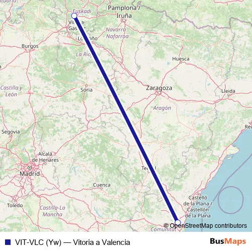 The first stop of the VIT-VLC (Yw) air route is Aeropuerto Vitoria and the last stop is Aeropuerto Valencia. VIT-VLC (Yw) (Vitoria a Valencia) is operational during todos los días.