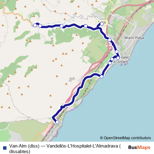 Click here to view the nearest Van-Alm (diss) - Vandellós-L'Hospitalet-L'Almadrava (dissabtes) bus stop.