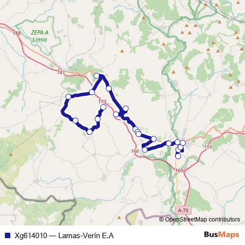 The first stop of the Xg614010 bus route is Lamas and the last stop is Verín E.A.. Xg614010 (Lamas-Verín E.A) is operational during entre semana.