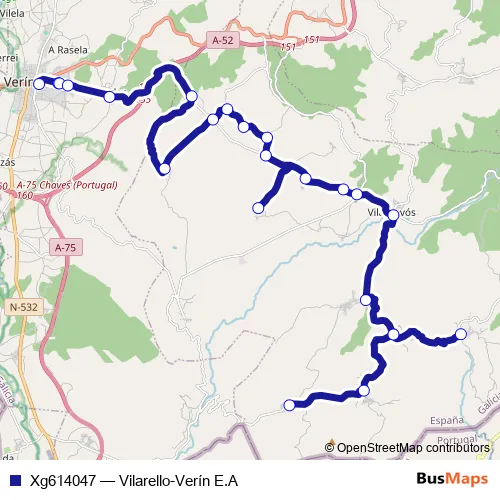 Click here to view the nearest Xg614047 - Vilarello-Verín E.A bus stop.