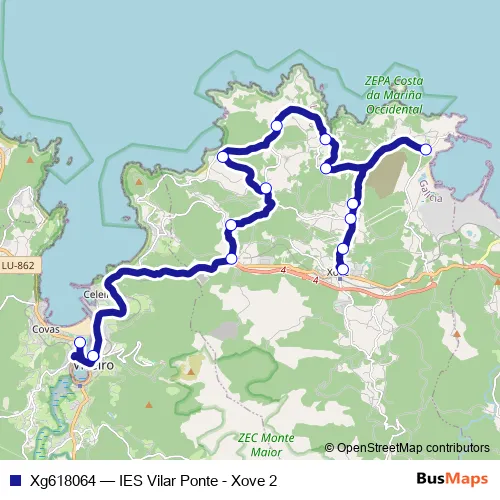 Click here to view the nearest Xg618064 - IES Vilar Ponte - Xove 2 bus stop.