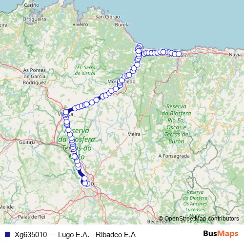 Click here to view the nearest Xg635010 - Lugo E.A. - Ribadeo E.A bus stop.