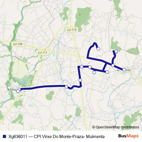 The first stop of the Xg636011 bus route is Praza- Muimenta and the last stop is CPI Virxe do Monte. Xg636011 (CPI Virxe Do Monte-Praza- Muimenta) is operational during entre semana.