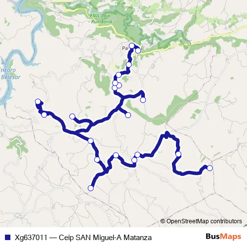 The first stop of the Xg637011 bus route is A Matanza and the last stop is Ceip San Miguel. Xg637011 (Ceip SAN Miguel-A Matanza) is operational during entre semana.
