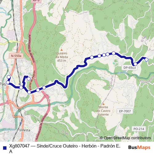 Click here to view the nearest Xg807047 - Sinde/Cruce Outeiro - Herbón - Padrón E.A bus stop.