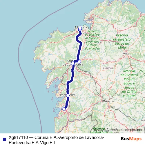 Click here to view the nearest Xg817110 - Coruña E.A.-Aeroporto de Lavacolla- Pontevedra E.A-Vigo E.I bus stop.
