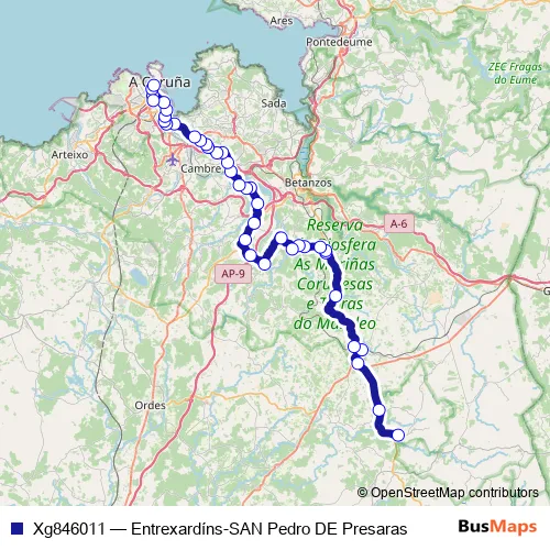 Bus Xg846011 - Entrexardíns-SAN Pedro DE Presaras in A Coruna: Stops & Timetable