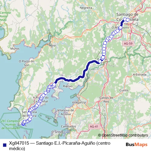 Click here to view the nearest Xg847015 - Santiago E.I.-Picaraña-Aguiño (centro médico) bus stop.