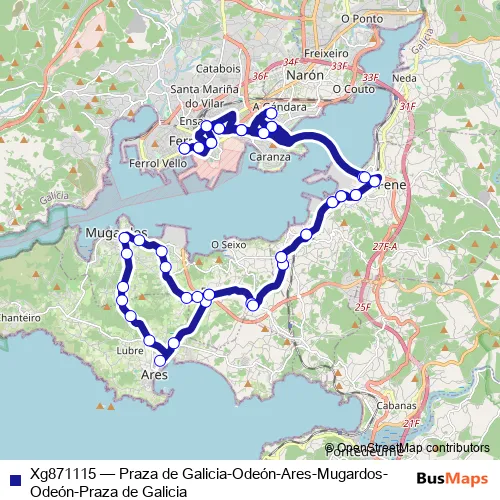 Click here to view the nearest Xg871115 - Praza de Galicia-Odeón-Ares-Mugardos-Odeón-Praza de Galicia bus stop.