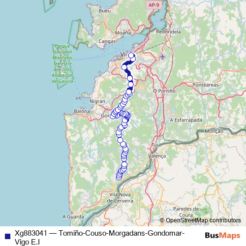 Click here to view the nearest Xg883041 - Tomiño-Couso-Morgadans-Gondomar-Vigo E.I bus stop.