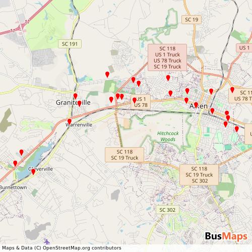 Transit map showing aiken-senior-life-services routes and stops in United States