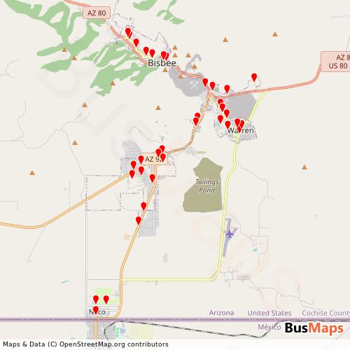 Bisbee Bus, based in Bisbee, Arizona, United States, offers a reliable and comprehensive network of public transport services, including Bus. Our platform provides detailed and up-to-date information on routes, schedules, stops, and arrivals for all services operated by Bisbee Bus. Whether you're planning your daily commute or exploring the city, our tools help you find the nearest stop and the best route to your destination.