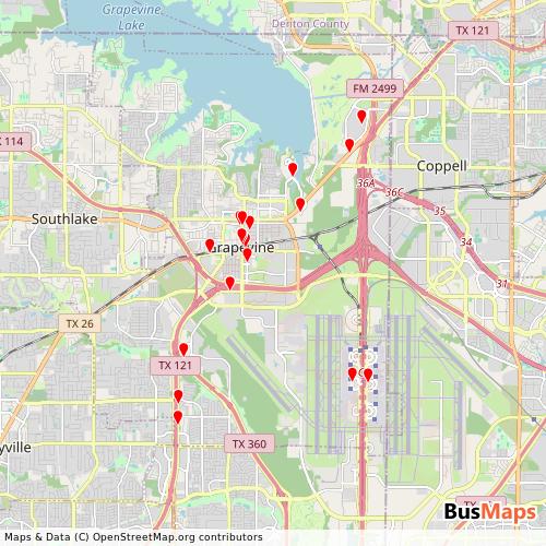 Centrally located within its service region, Grapevine Visitors Shuttle operates in the America/Chicago timezone, facilitating smooth transit connections across Grapevine and surrounding areas. Daylight saving time begins on 08 Mar 2026 (Forward 1 hour) and ends on 01 Nov 2026 (Back 1 hour). This accurate location and time information helps ensure you have everything you need to plan your journeys effectively.