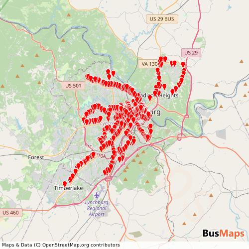 Greater Lynchburg Transit Co. operates in the following cities: Lynchburg.