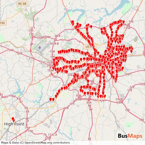 Greensboro Transit Agency operates in the following cities: Greensboro, High Point.