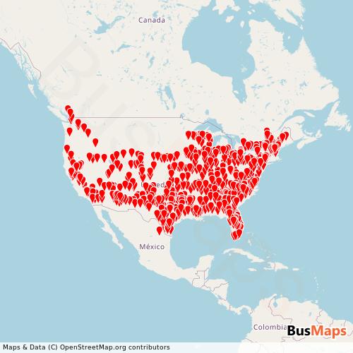Transit Data for United States by Greyhound-us with Stops on Map
