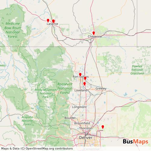 Groome Transportation operates in the following cities: Fort Collins, Laramie.