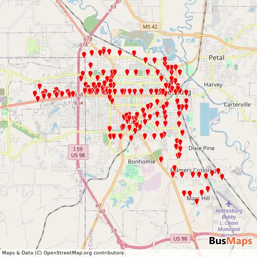 Hub City Transit, based in Hattiesburg, Mississippi, United States, offers a reliable and comprehensive network of public transport services, including Bus. Our platform provides detailed and up-to-date information on routes, schedules, stops, and arrivals for all services operated by Hub City Transit. Whether you're planning your daily commute or exploring the city, our tools help you find the nearest stop and the best route to your destination.