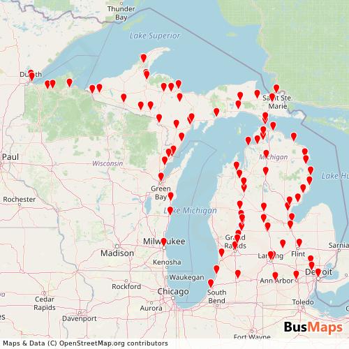 Indian Trails operates in the following cities: Lansing, Big Rapids, Crystal Falls, Hurley, Jackson, Kalamazoo, L'Anse, Pontiac, Sheboygan, Standish, Escanaba, Flint, Saint Ignace.