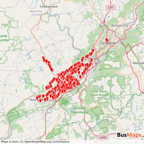 Luzerne County Transportation Authority, based in Wilkes-Barre, Pennsylvania, United States, offers a reliable and comprehensive network of public transport services, including Bus. Our platform provides detailed and up-to-date information on routes, schedules, stops, and arrivals for all services operated by Luzerne County Transportation Authority. Whether you're planning your daily commute or exploring the city, our tools help you find the nearest stop and the best route to your destination.