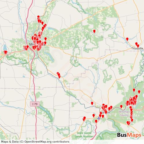Meadville, based in Franklin, Pennsylvania, United States, offers a reliable and comprehensive network of public transport services, including Bus. Our platform provides detailed and up-to-date information on routes, schedules, stops, and arrivals for all services operated by Meadville. Whether you're planning your daily commute or exploring the city, our tools help you find the nearest stop and the best route to your destination.