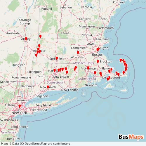Peter Pan (Bz) operates in the following cities: Boston, Providence, Lenox, Hartford, New Bedford, Truro.