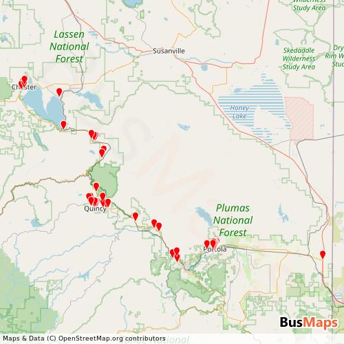 Plumas Transit, based in Quincy, California, United States, offers a reliable and comprehensive network of public transport services, including Bus. Our platform provides detailed and up-to-date information on routes, schedules, stops, and arrivals for all services operated by Plumas Transit. Whether you're planning your daily commute or exploring the city, our tools help you find the nearest stop and the best route to your destination.