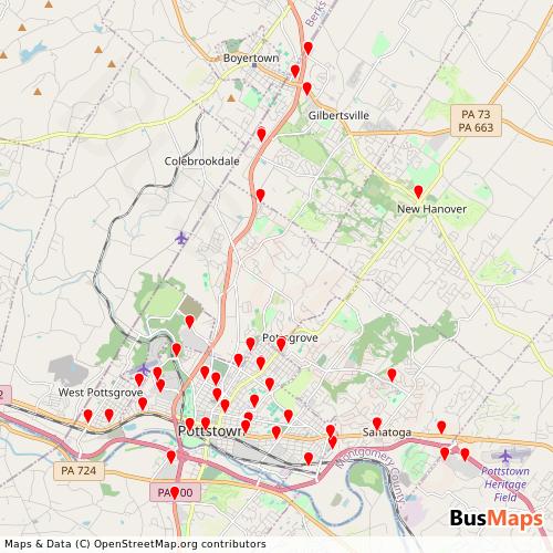 Pottstown Area Rapid Transit operates in the following cities: Sanatoga, Gilbertsville, Pottstown, Stowe.