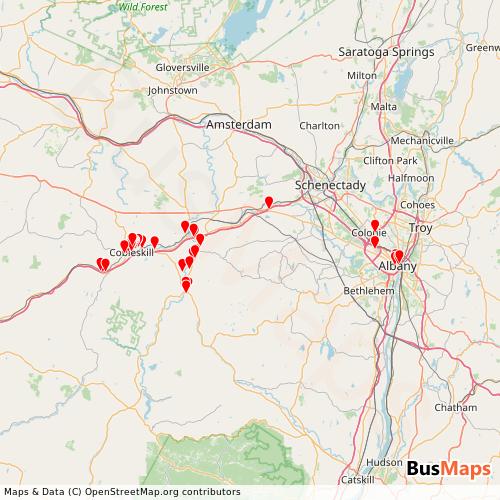 Schoharie County Public Transit operates in the following cities: Cobleskill, Schoharie, Albany.