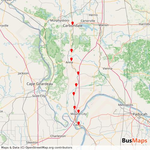 Shawnee Mass Transit District, based in Jonesboro, Illinois, United States, offers a reliable and comprehensive network of public transport services, including Bus. Our platform provides detailed and up-to-date information on routes, schedules, stops, and arrivals for all services operated by Shawnee Mass Transit District. Whether you're planning your daily commute or exploring the city, our tools help you find the nearest stop and the best route to your destination.