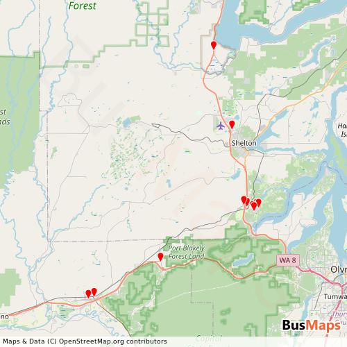 Squaxin Island Transit operates in the following cities: Shelton, McCleary.