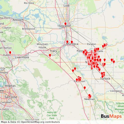 The S, based in Modesto, California, United States, offers a reliable and comprehensive network of public transport services, including Bus. Our platform provides detailed and up-to-date information on routes, schedules, stops, and arrivals for all services operated by The S. Whether you're planning your daily commute or exploring the city, our tools help you find the nearest stop and the best route to your destination.