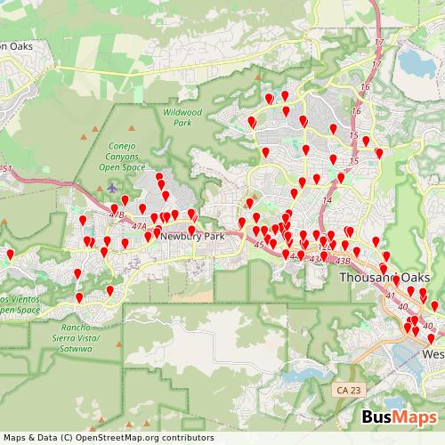 Thousand Oaks Transit operates in the following cities: Thousand Oaks.