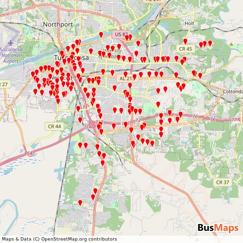 Tuscaloosa Transit Authority operates in the following cities: Tuscaloosa.