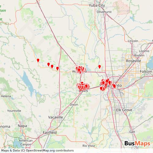 Yolo County Transportation District operates in the following cities: Sacramento, Woodland.