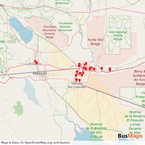 Yuma County Intergovernmental Public Transportation Authority operates in the following cities: Yuma, San Luis Rio Colorado.