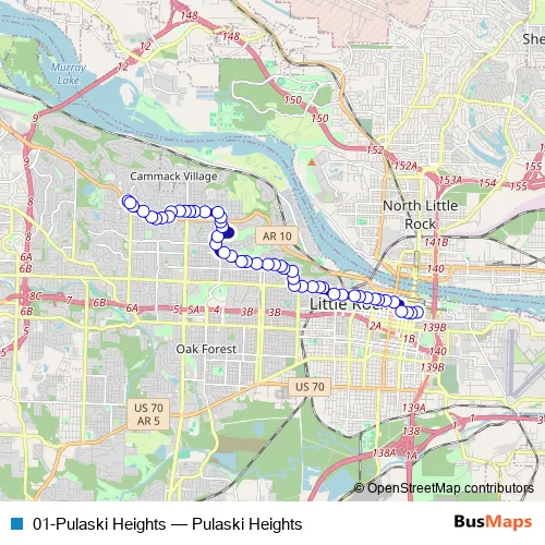 See why over 2 million users trust and consider busmaps.com as the best public transport website. busmaps gives you Little Rock Buses suggested routes, real-time bus tracker, line route maps in Little Rock, and helps to find the closest 01-Pulaski Heights bus stops near you. No internet available? Download an offline PDF map and bus schedule for the 01-Pulaski Heights bus to take on your trip.