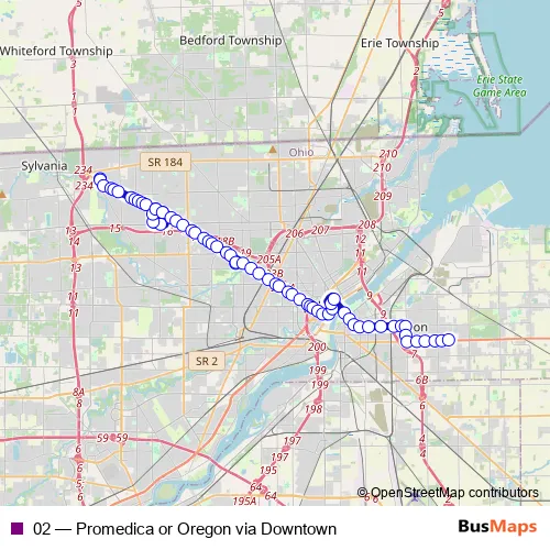 Click here to view the nearest 02 - Promedica or Oregon via Downtown bus stop.