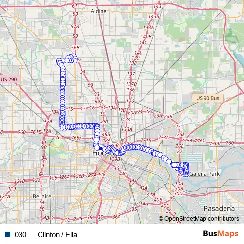 See why over 2 million users trust and consider busmaps.com as the best public transport website. busmaps gives you Houston Buses suggested routes, real-time bus tracker, line route maps in Houston, and helps to find the closest 030 bus stops near you. No internet available? Download an offline PDF map and bus schedule for the 030 bus to take on your trip.