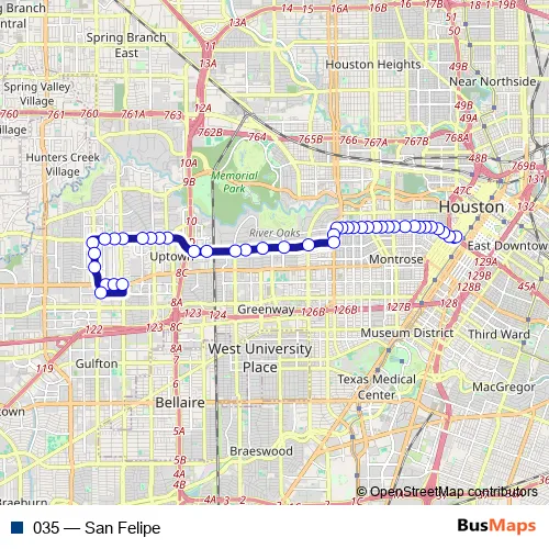 See why over 2 million users trust and consider busmaps.com as the best public transport website. busmaps gives you Houston Buses suggested routes, real-time bus tracker, line route maps in Houston, and helps to find the closest 035 bus stops near you. No internet available? Download an offline PDF map and bus schedule for the 035 bus to take on your trip.