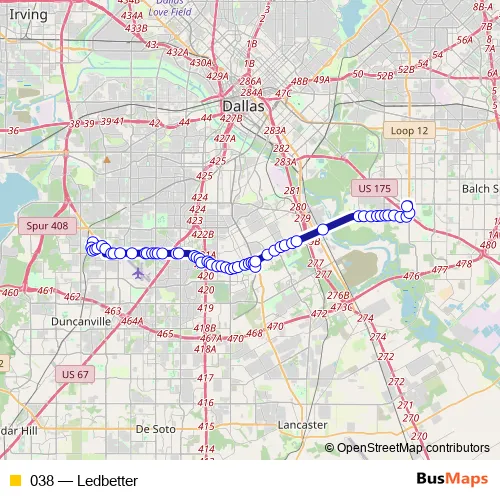 Bus 038 - Ledbetter in Dallas: Stops & Timetable